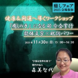 【有料講演】「癒しの手」になる40分合掌行と龍体文字×祝詞パワーで健康&開運